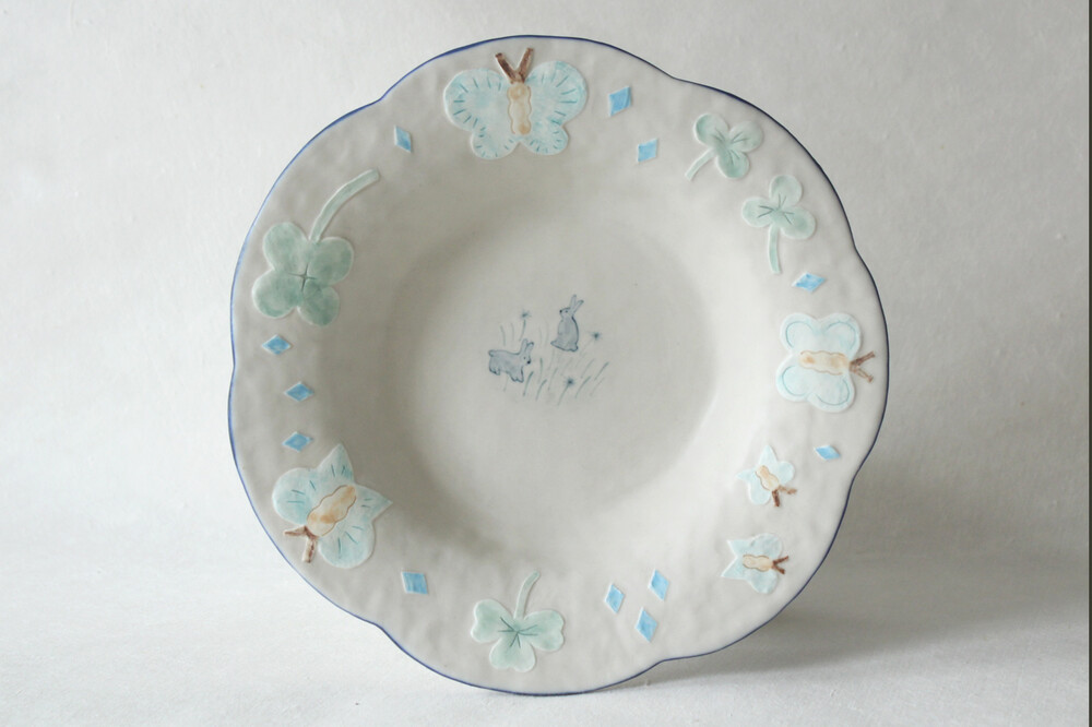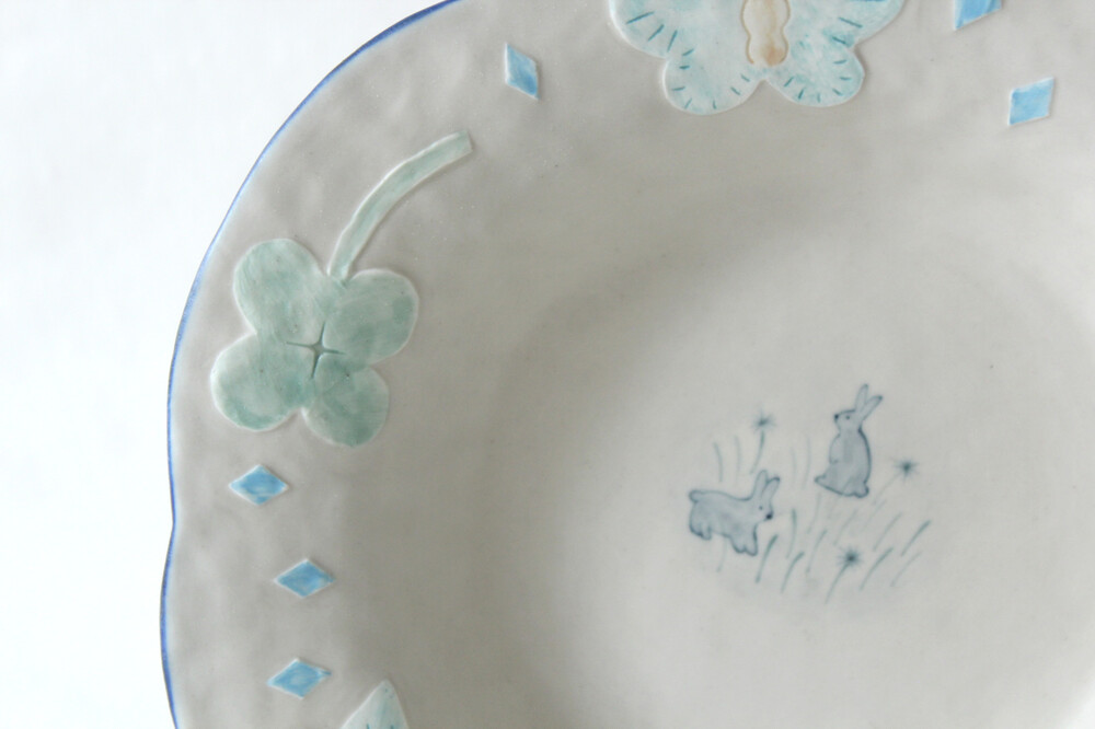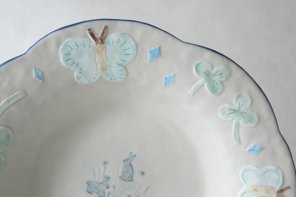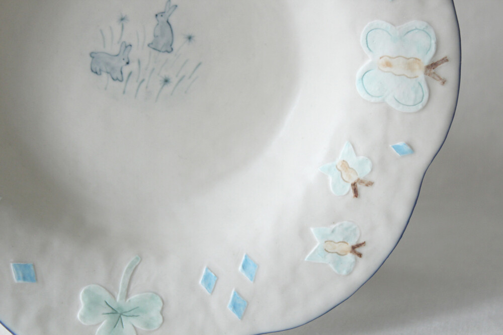 Summary : 토끼풀 사이로 깡충깡충 토끼 두 마리가 뛰어논다. 그 옆으로 나비도 살랑살랑 날아온다.