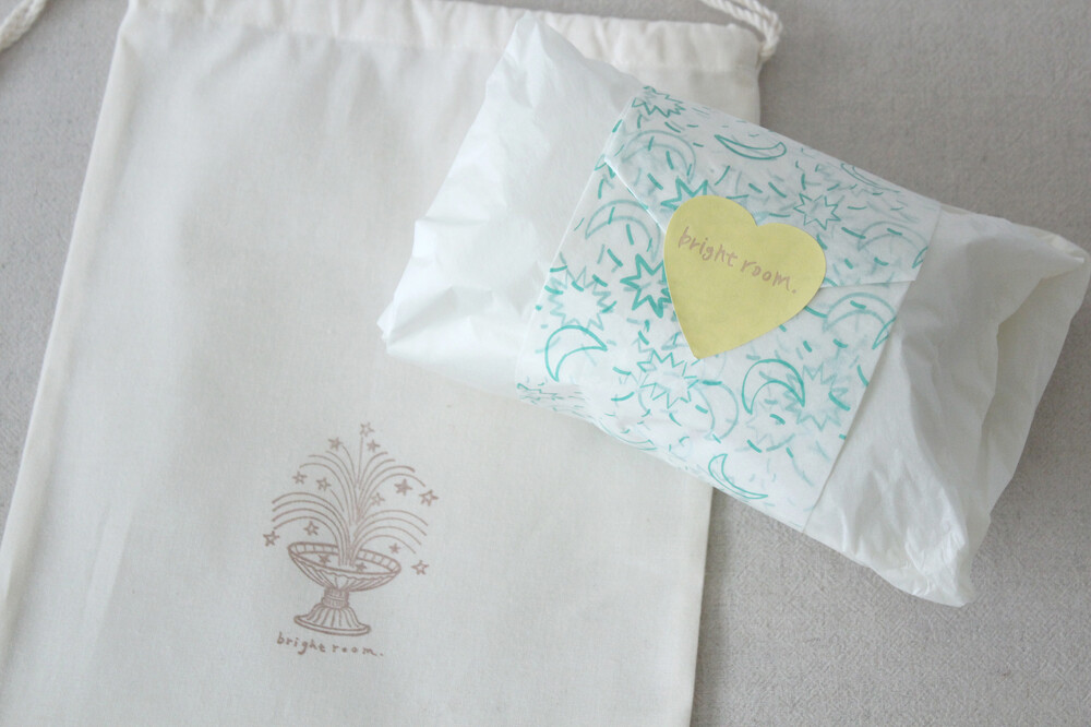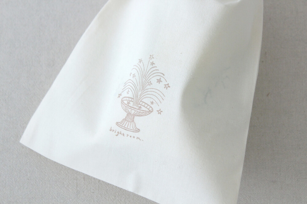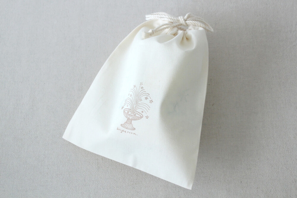 국산 면 100% 로 만들어진 주머니로 지속적인 사용이 가능하며 앞면에는 브라이트룸의 일러스트가 그려져 있습니다