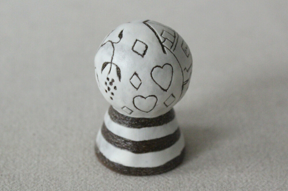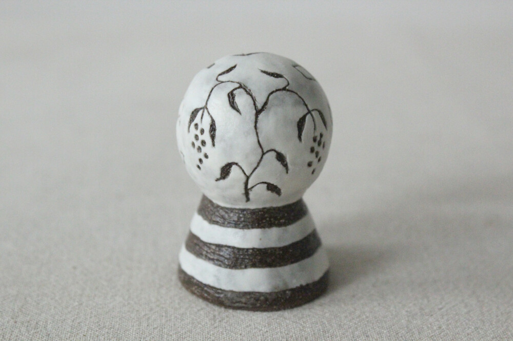 갈색토를 이용해 빚은 후 아이보리 톤의 화장토로 세밀하게 장식하였습니다