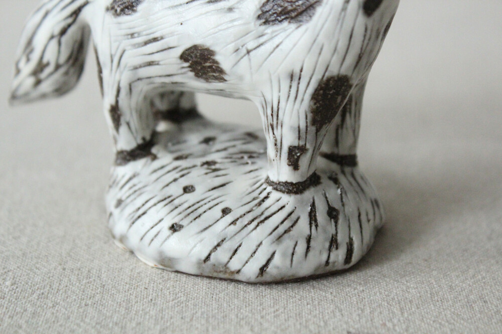 갈색토를 이용해 빚은 후 아이보리 톤의 화장토로 세밀하게 장식하였습니다