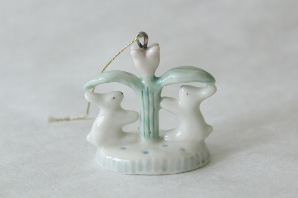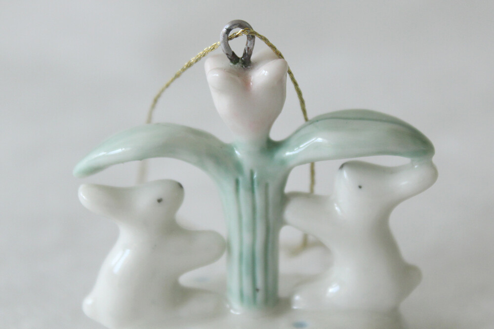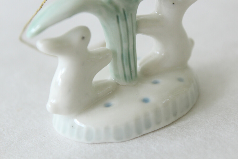 눈이 내려 이파리 사이로 숨은 토끼 두 마리