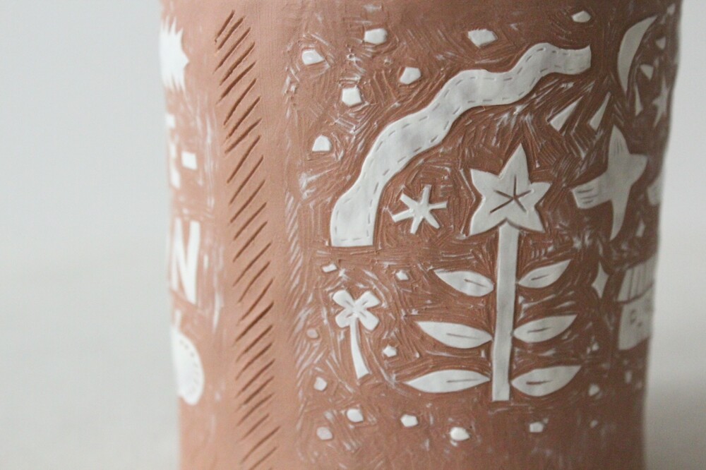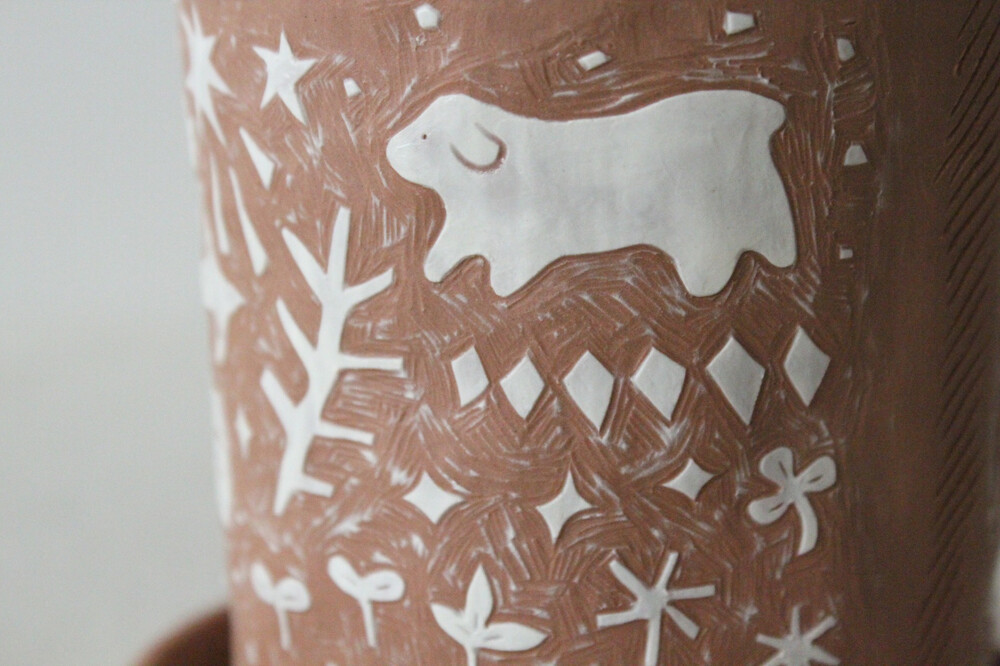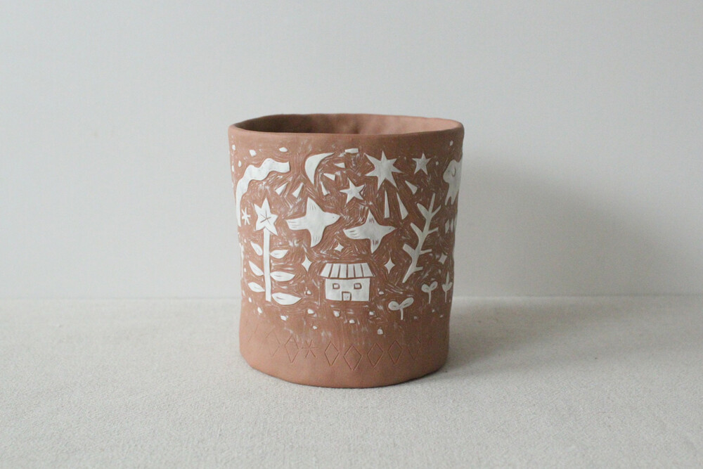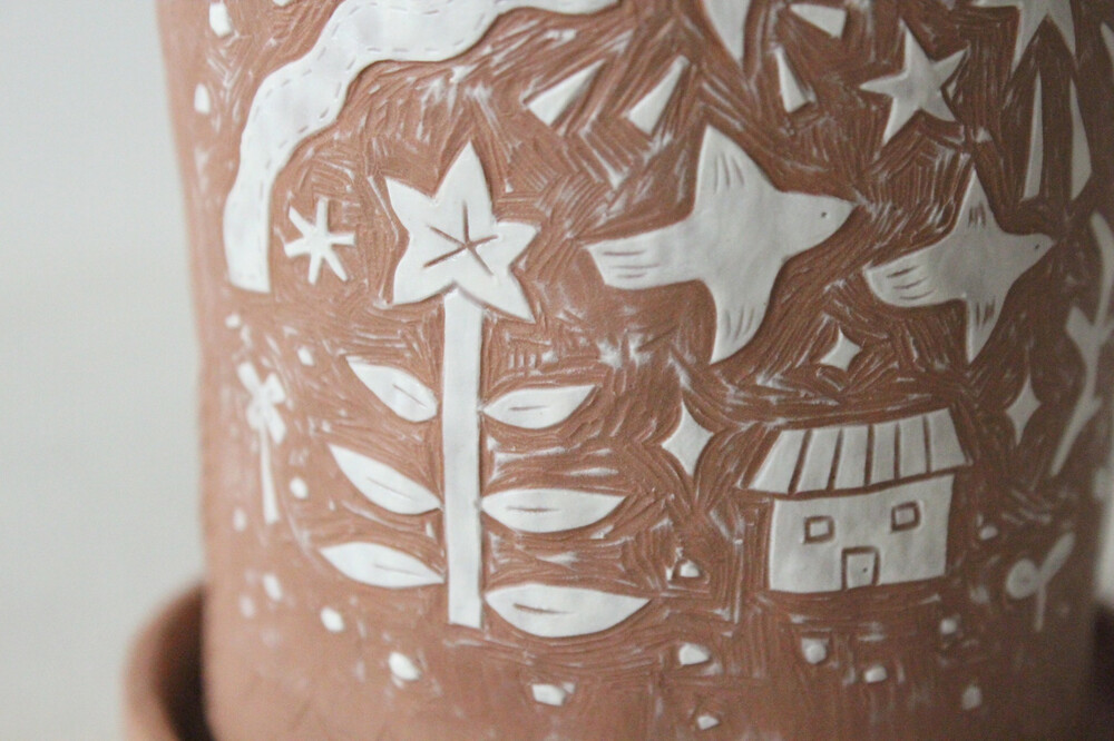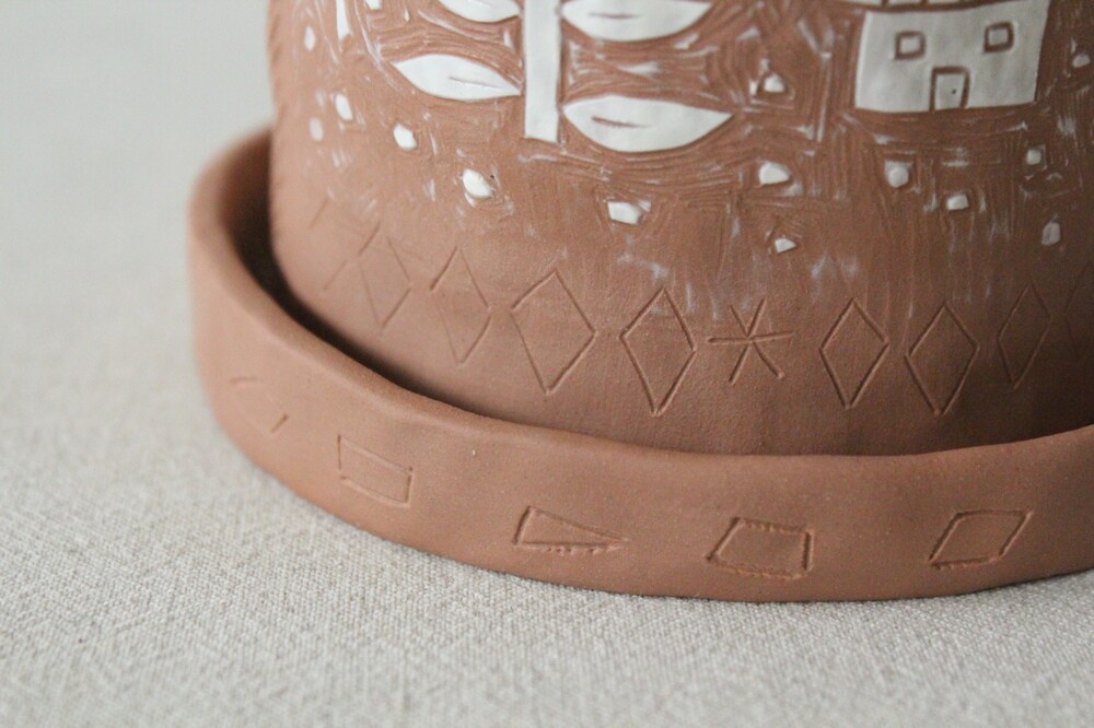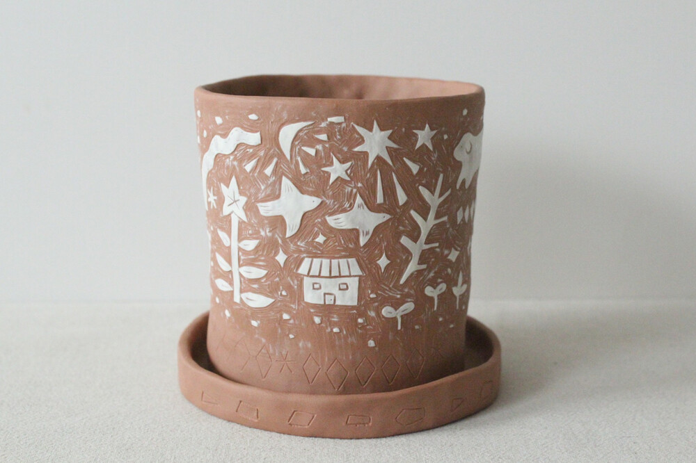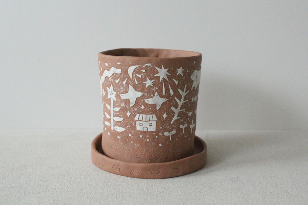 화분에 잘 어울리는 색감의 갈색토를 이용해 반듯한 분 형태로 빚은 후