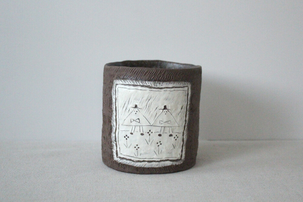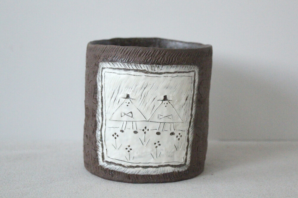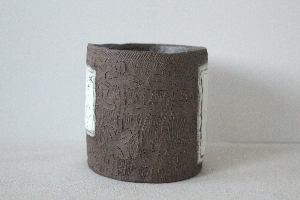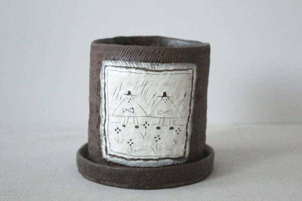 화분에 잘 어울리는 색감의 갈색토를 이용해 반듯한 분 형태로 빚은 후