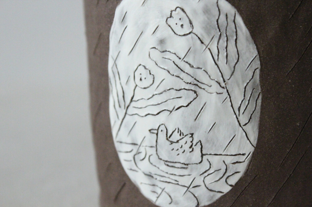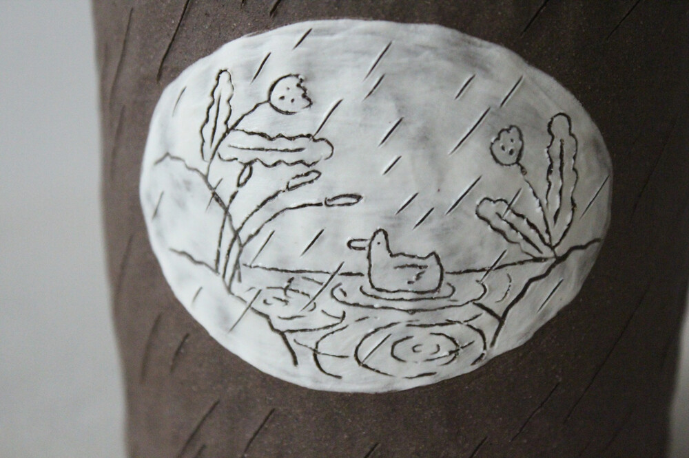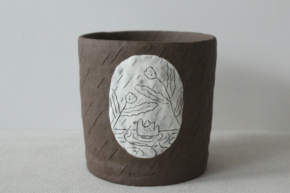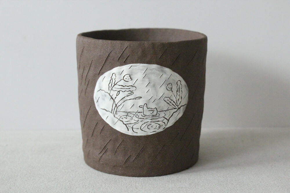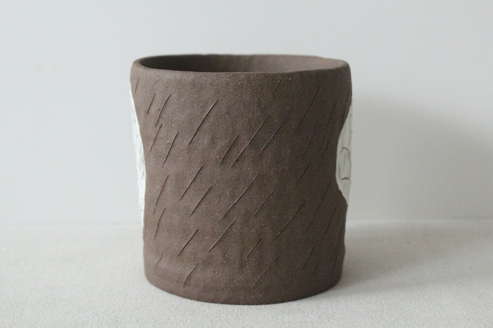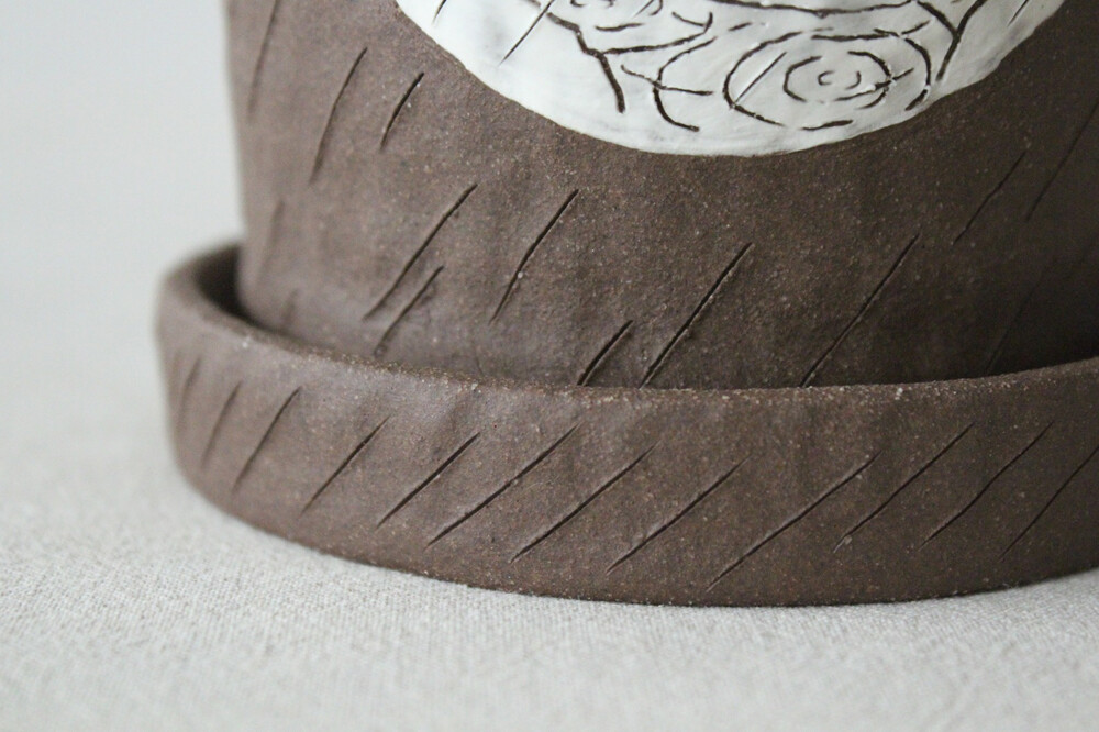 화분에 잘 어울리는 색감의 갈색토를 이용해 반듯한 분 형태로 빚은 후