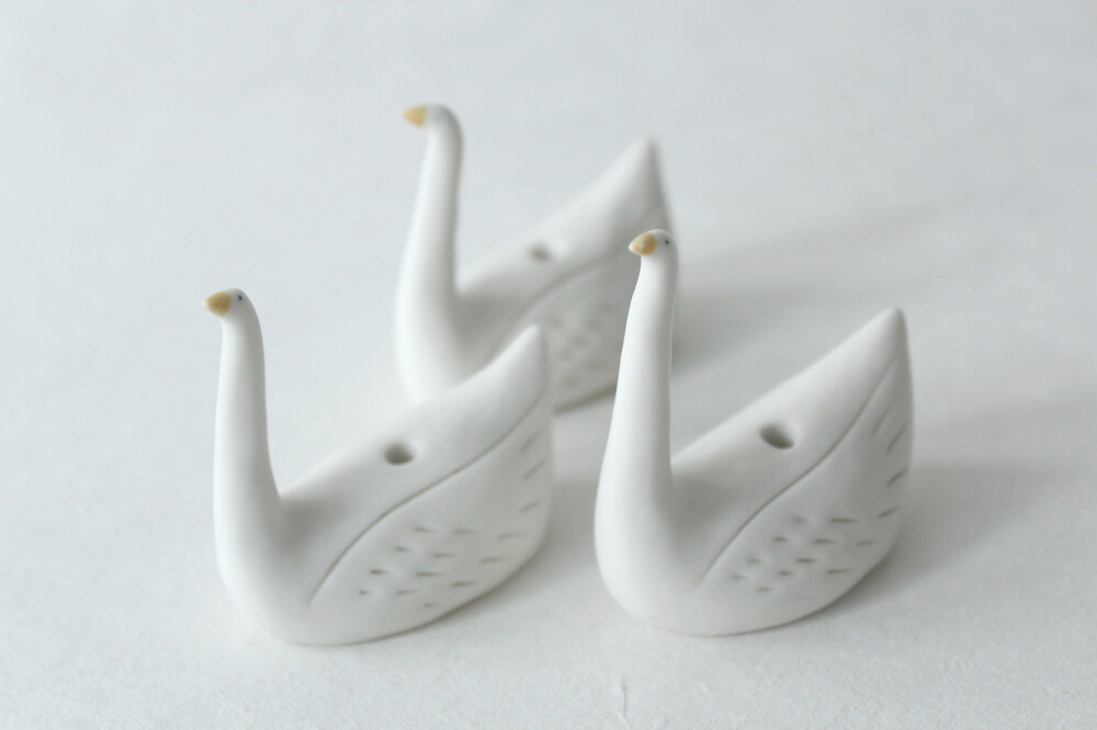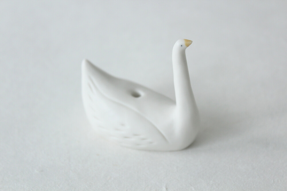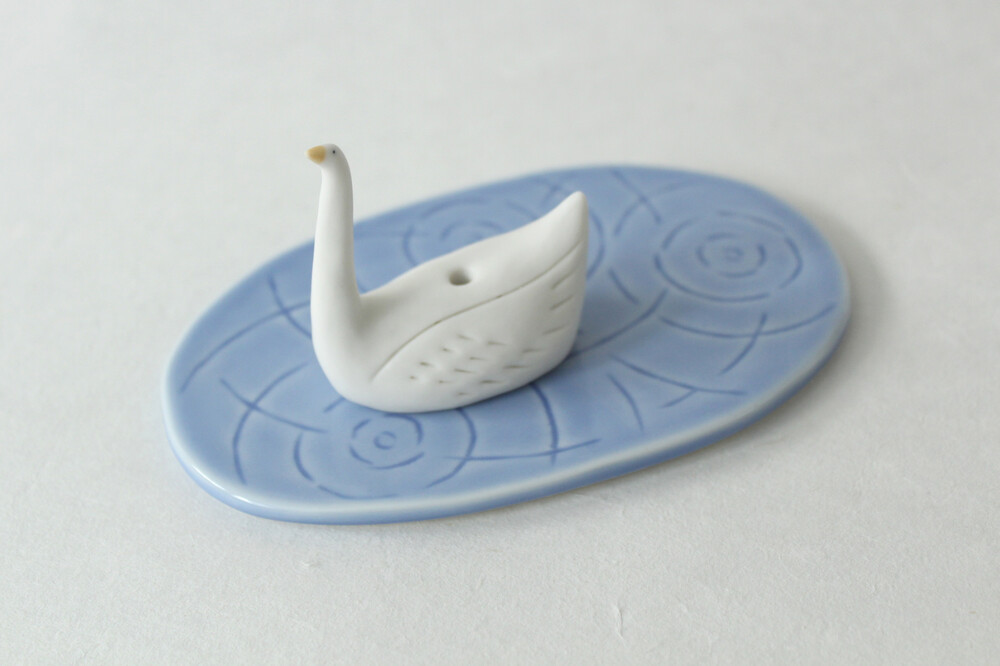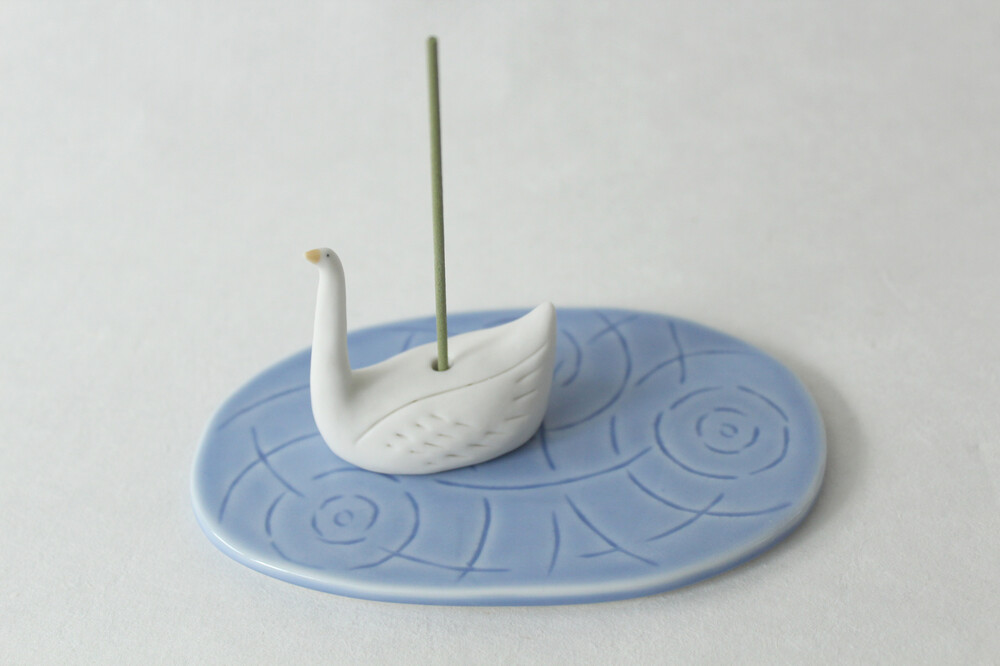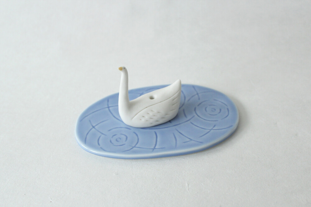 잔잔한 비가 내리는 호수에 떠 있는 백조를 모티브로 하여 작업한 인센스 홀더 세트입니다