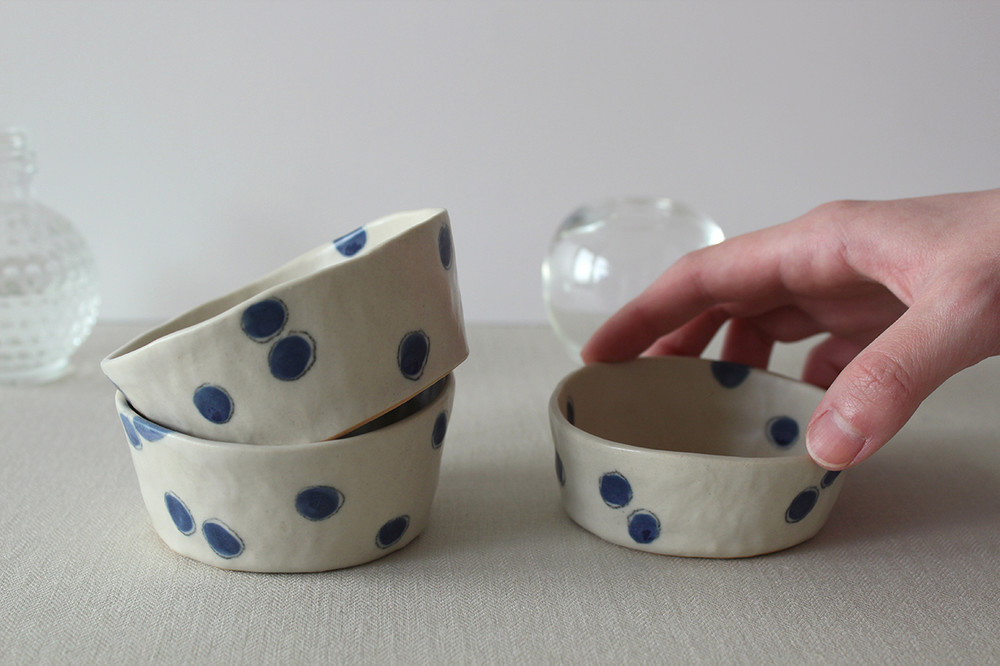 푸른 청색의 도트 패턴이 테이블에 작은 활기를 불어넣어 줍니다