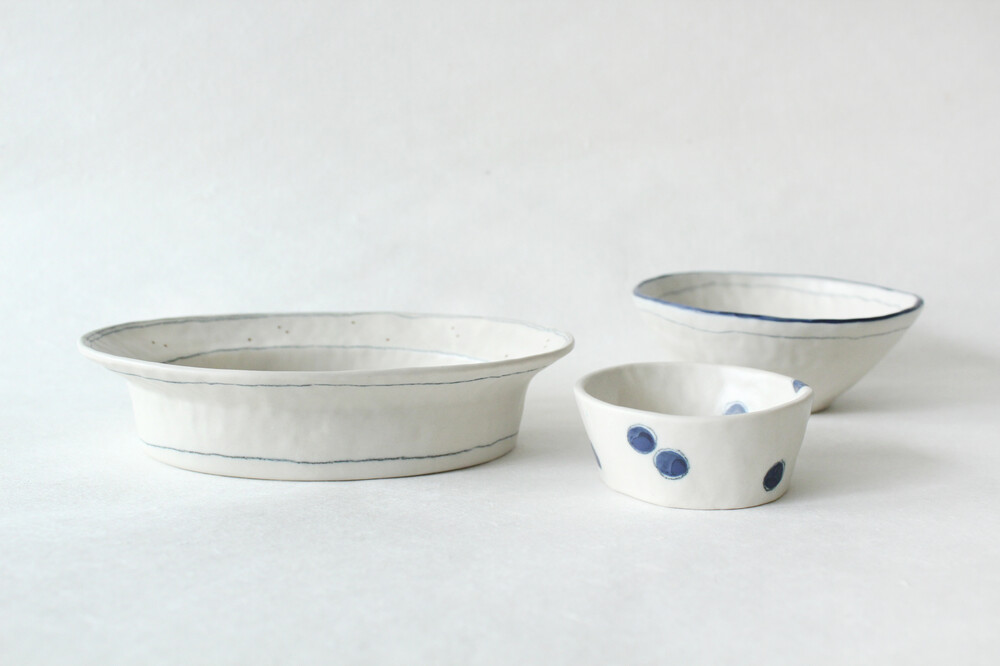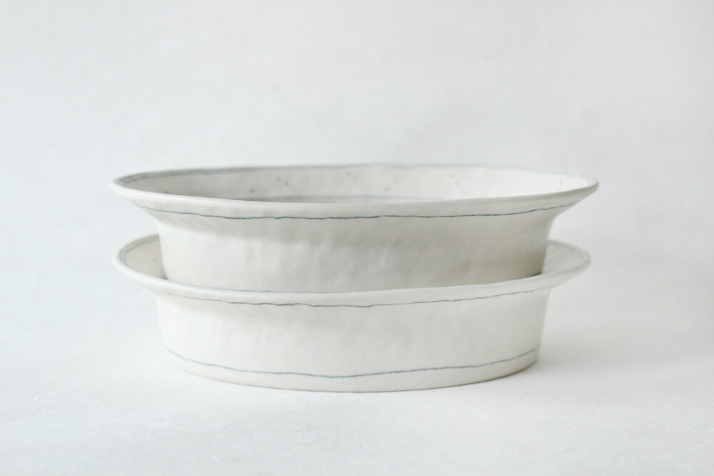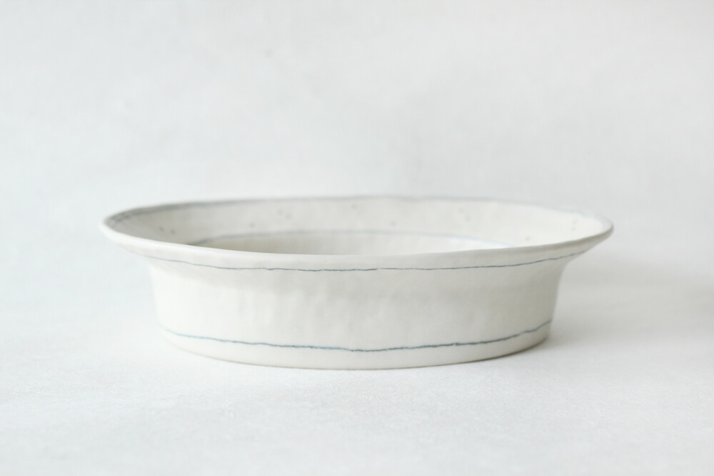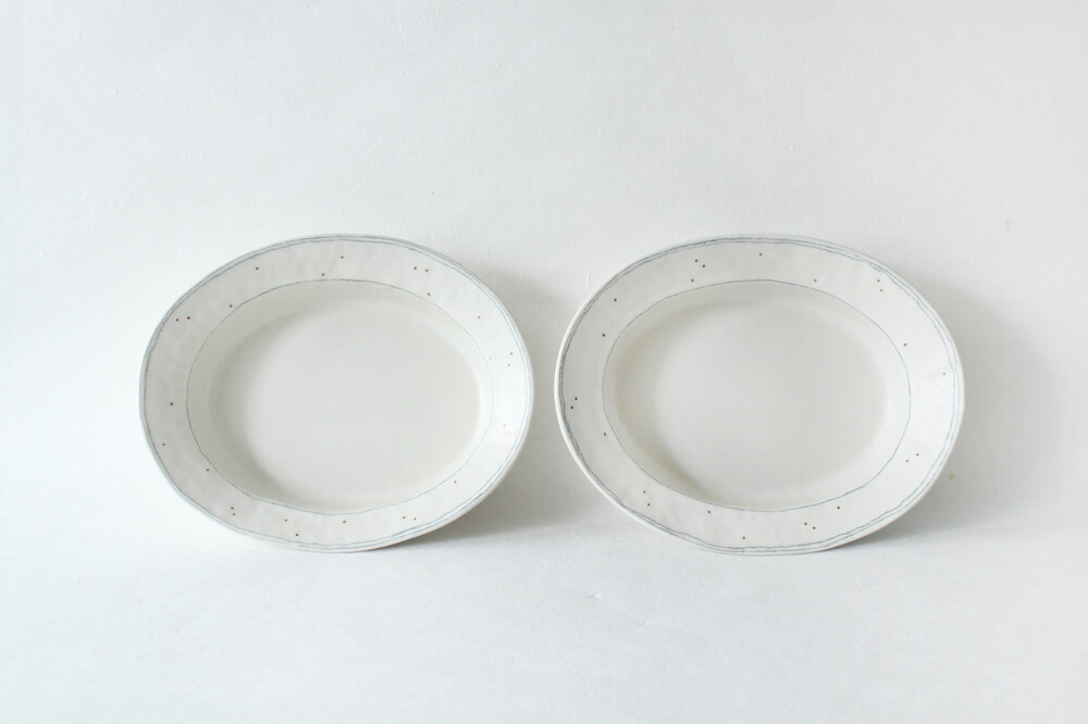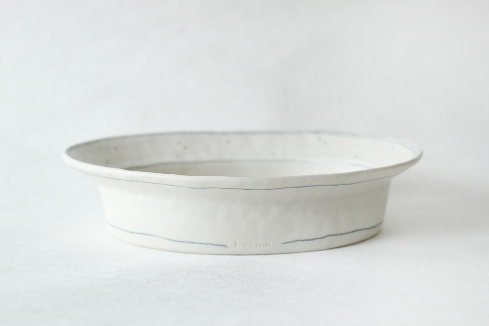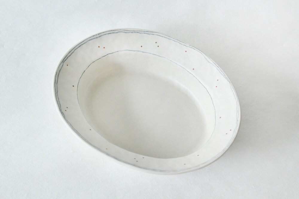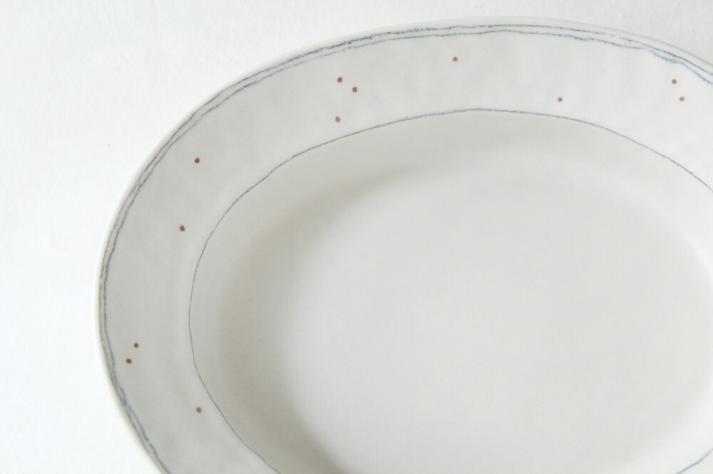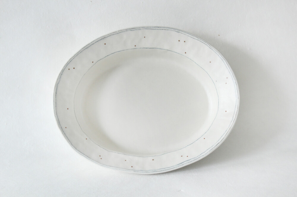손으로 조물조물 빚어 만든 타원형의 플레이트입니다