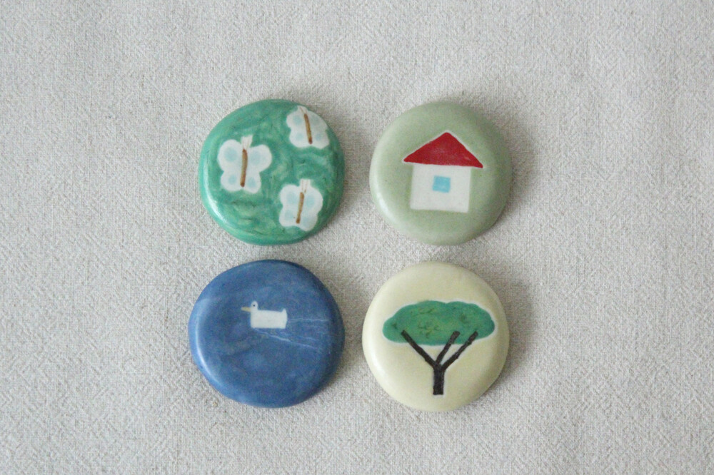 작은 쿠키가 연상되는 형태에 포인트가 되는 일러스트가 담긴 젓가락 받침입니다