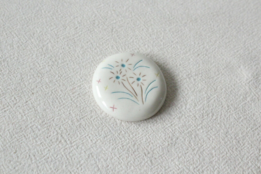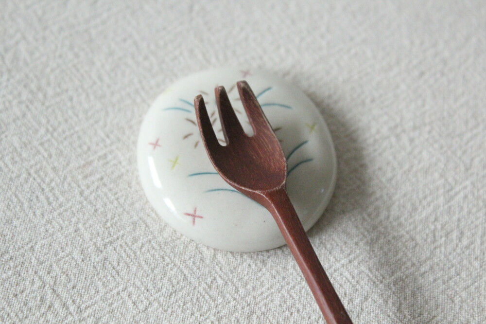 작은 쿠키가 연상되는 형태에 포인트가 되는 일러스트가 담긴 젓가락 받침입니다