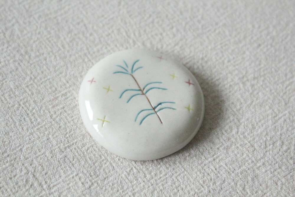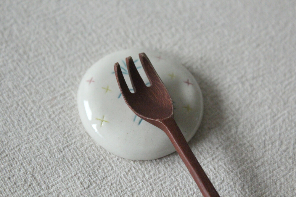 작은 쿠키가 연상되는 형태에 포인트가 되는 일러스트가 담긴 젓가락 받침입니다