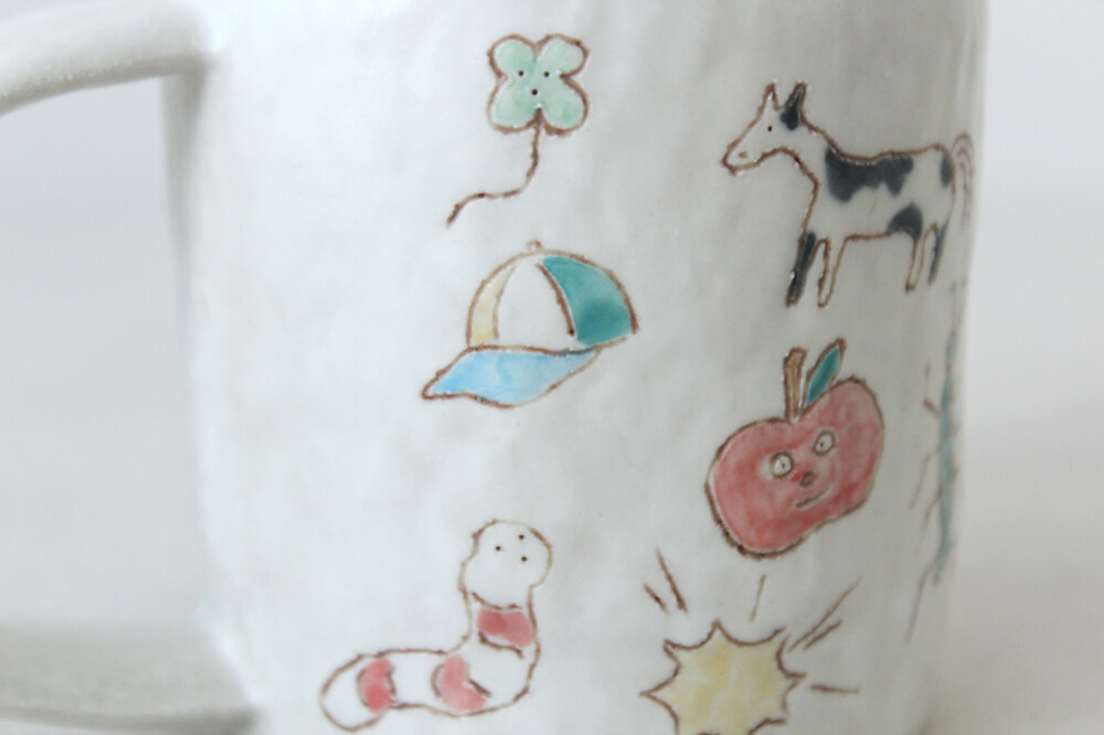 핸드빌딩으로 만든 형태에 제목마다 고유한 아트웍을 담아 심도있게 제작되었습니다